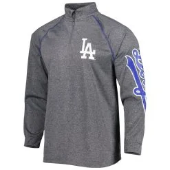 Men’s Los Angeles Dodgers Stitches Heather Gray Wordmark Raglan Quarter-Zip Top