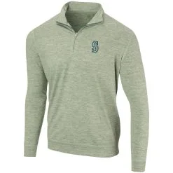 Full Turn Men’s Seattle Mariners Heathered Green Peached Marled Yarn Quarter-Zip Pullover Jacket