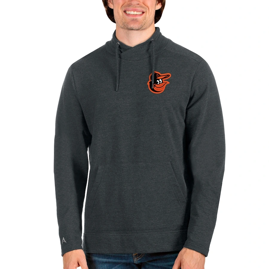Men’s Baltimore Orioles Antigua Heathered Charcoal Team Reward Pullover Sweatshirt