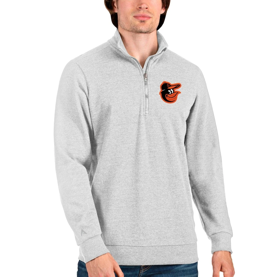 Men’s Baltimore Orioles Antigua Heathered Gray Action Quarter-Zip Pullover Sweatshirt