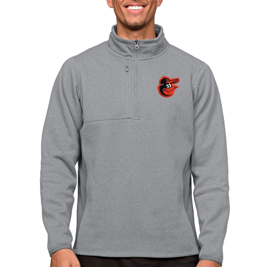 Men’s Baltimore Orioles Antigua Heathered Gray Course Quarter-Zip Pullover Top
