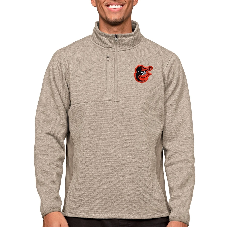 Men’s Baltimore Orioles Antigua Oatmeal Course Quarter-Zip Pullover Top