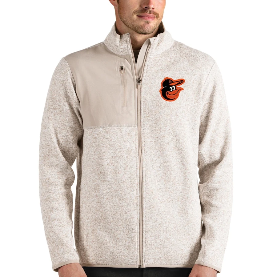 Men’s Baltimore Orioles Antigua Oatmeal Fortune Full-Zip Jacket