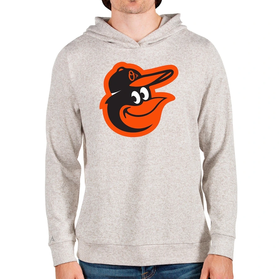 Men’s Baltimore Orioles Antigua Oatmeal Team Logo Absolute Pullover Hoodie