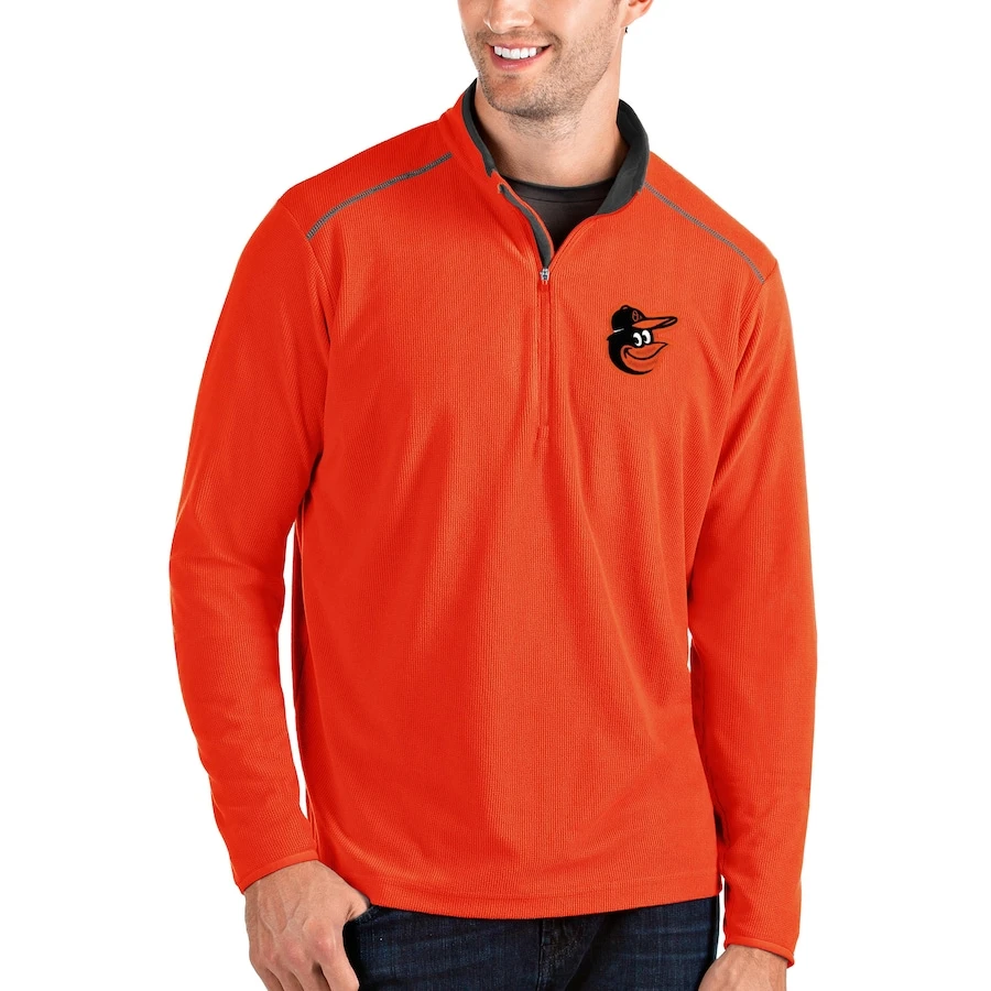Men’s Baltimore Orioles Antigua Orange Glacier Quarter-Zip Pullover Jacket