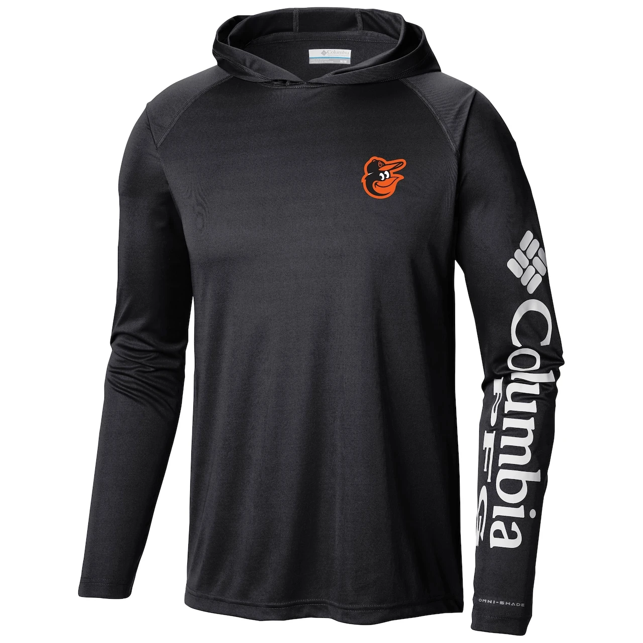 Men’s Baltimore Orioles Columbia Black Terminal Tackle Long Sleeve Hoodie T-Shirt