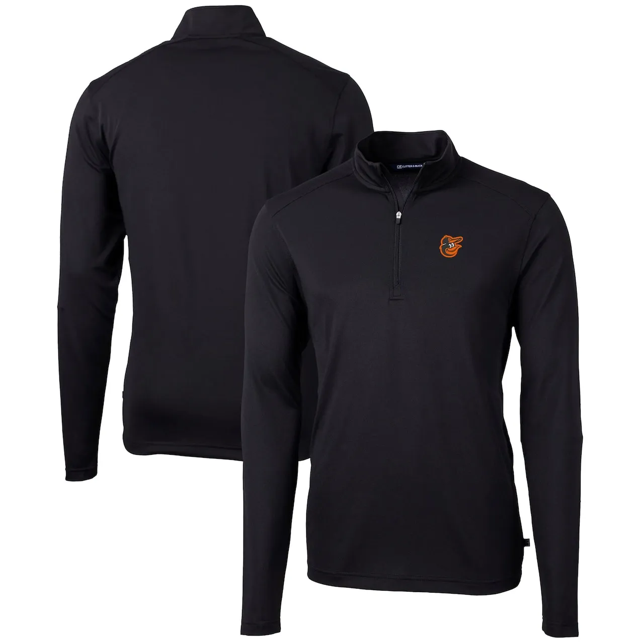 Men’s Baltimore Orioles Cutter & Buck Black Virtue Eco Pique Recycled Quarter-Zip Pullover Top