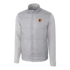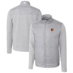 Men’s Baltimore Orioles Cutter & Buck Gray Stealth Hybrid Quilted Full-Zip Windbreaker Jacket