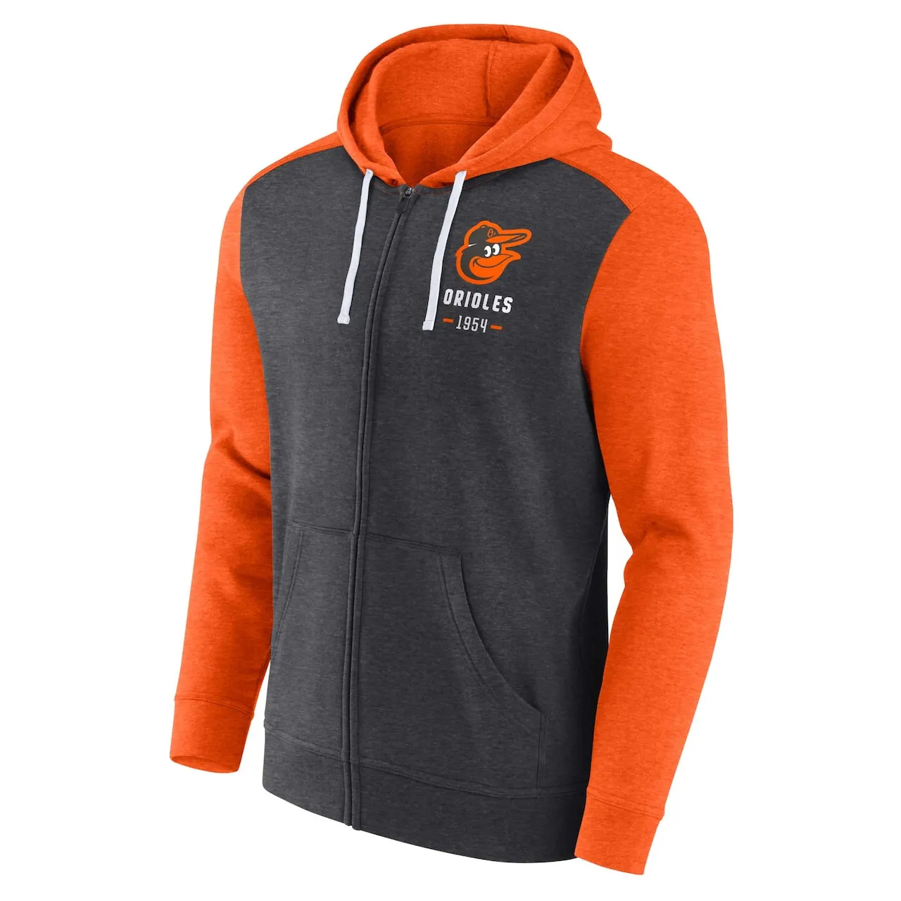 Men’s Baltimore Orioles Fanatics Branded Heathered Charcoal/Heathered Orange Blown Away Full-Zip Hoodie