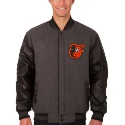 Men’s Baltimore Orioles JH Design Charcoal/Black Wool & Leather Reversible Jacket