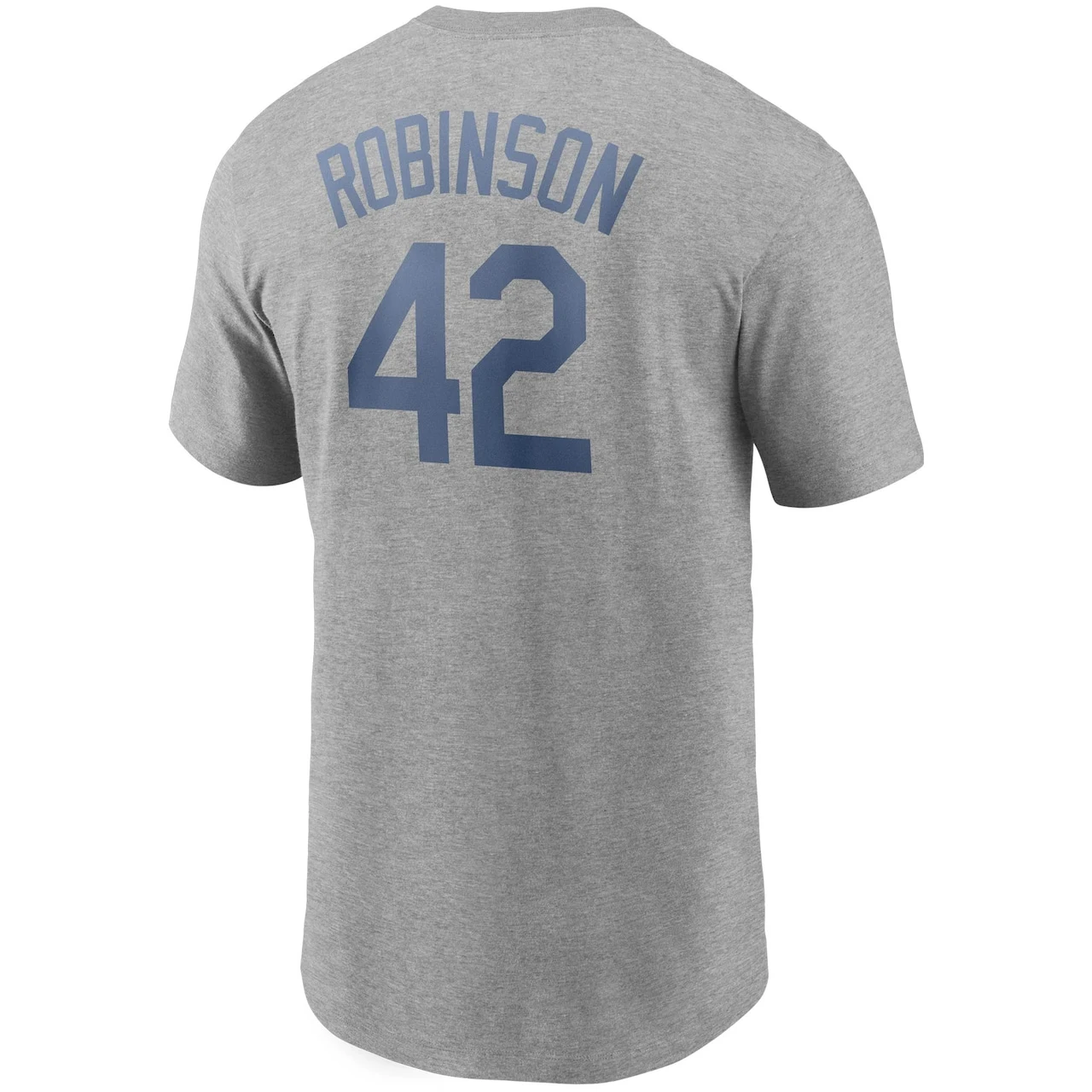Men’s Brooklyn Dodgers Jackie Robinson Nike Heathered Gray Cooperstown Collection Name & Number T-Shirt
