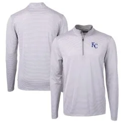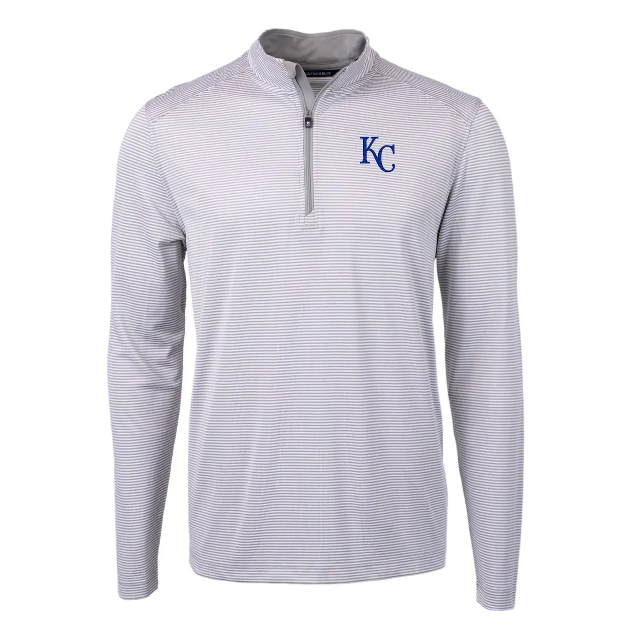 Men’s Kansas City Royals Cutter & Buck Gray Virtue Eco Pique Micro Stripe Recycled Quarter-Zip Pullover Top