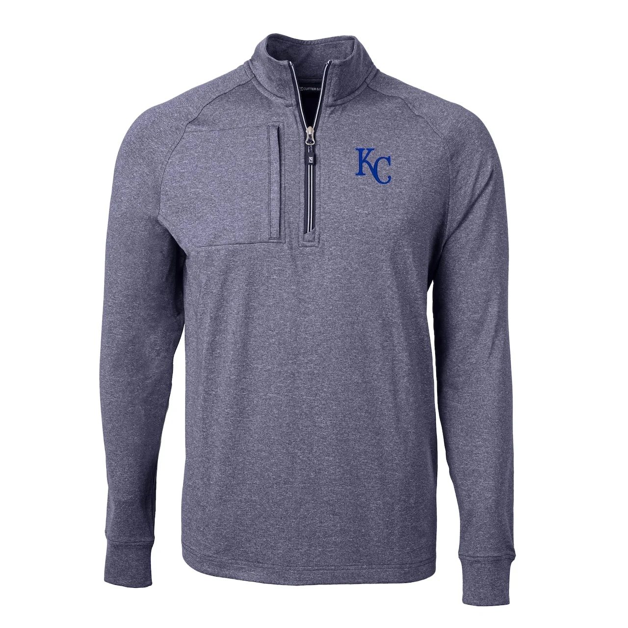 Men’s Kansas City Royals Cutter & Buck Heather Navy Adapt Eco Knit Stretch Recycled Quarter-Zip Pullover Top