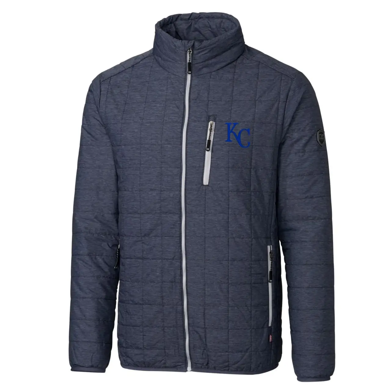 Men’s Kansas City Royals Cutter & Buck Heathered Navy Rainier Eco Insulated Full-Zip Puffer Jacket