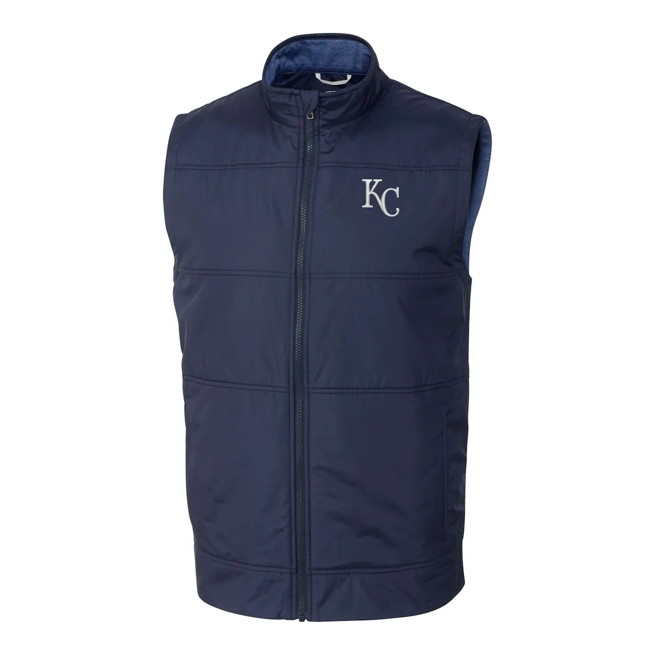 Men’s Kansas City Royals Cutter & Buck Navy Stealth Hybrid Quilted Windbreaker Full-Zip Vest