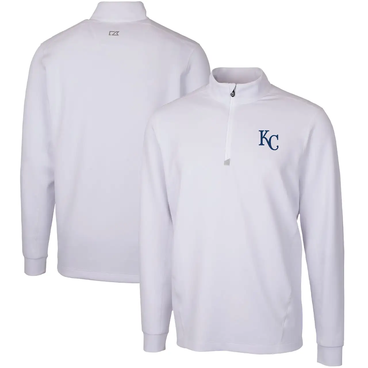 Men’s Kansas City Royals Cutter & Buck White Traverse Stretch Quarter-Zip Pullover Top