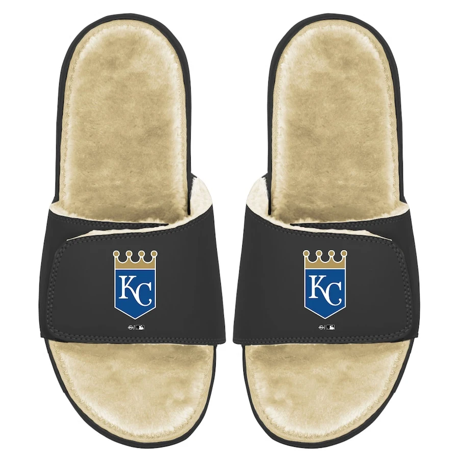Men’s Kansas City Royals ISlide Black/Tan Faux Fur Slide Sandals