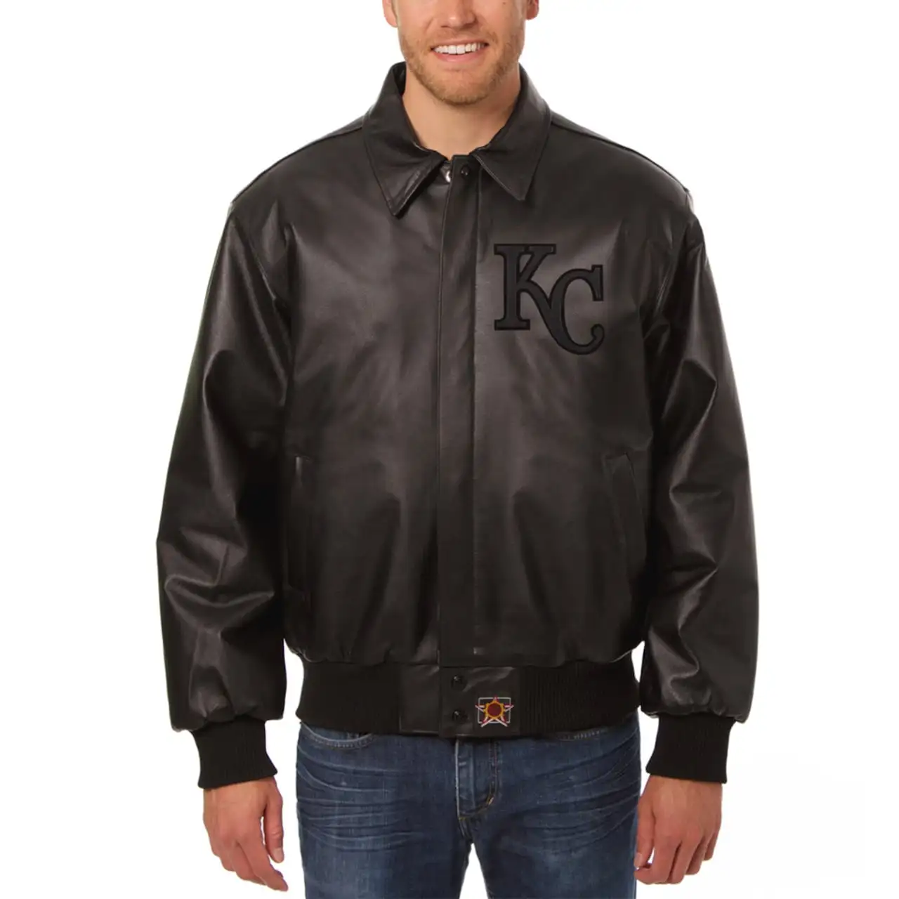 Men’s Kansas City Royals JH Design Black Tonal Leather Jacket