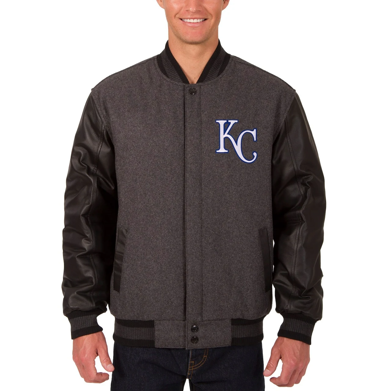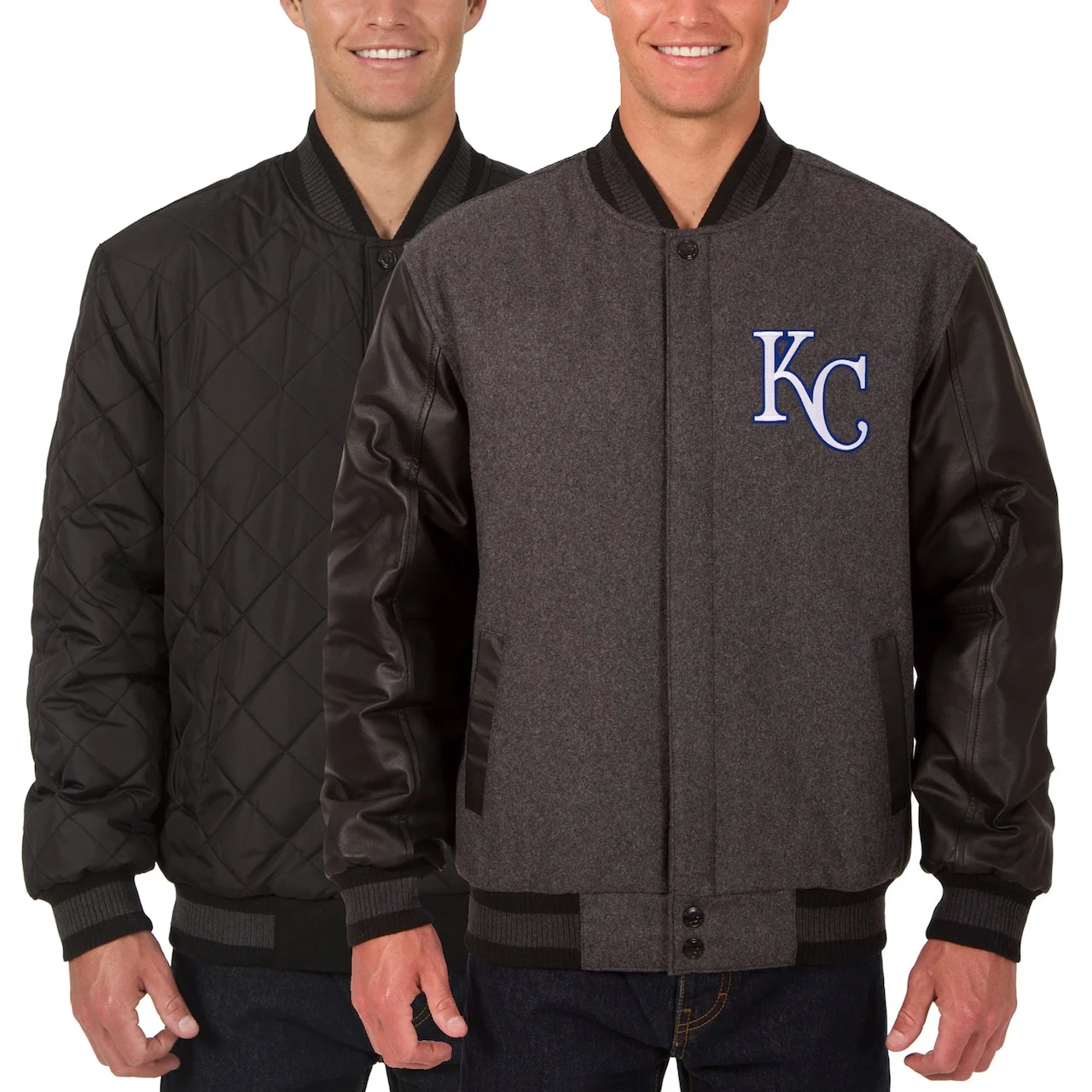 Men’s Kansas City Royals JH Design Charcoal/Black Wool Leather Reversible Full-Snap Jacket