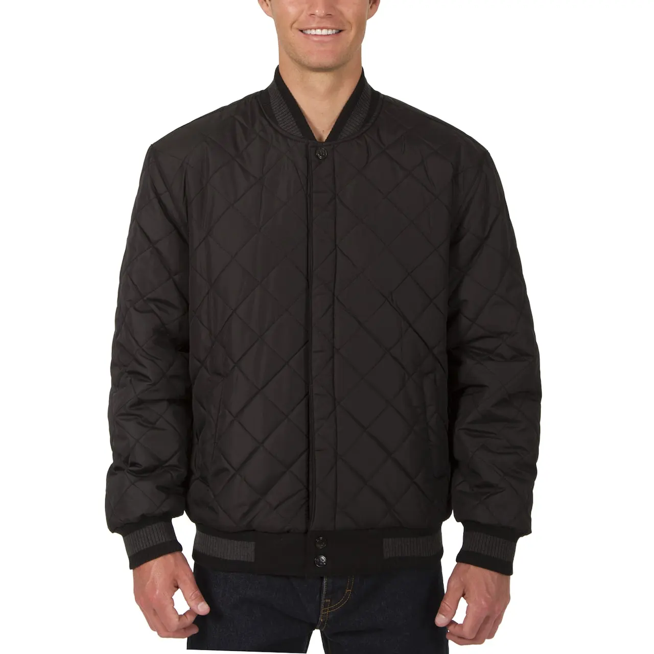 - Rib-knit cuffs, hem and collar
