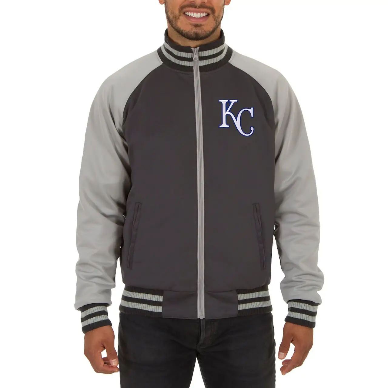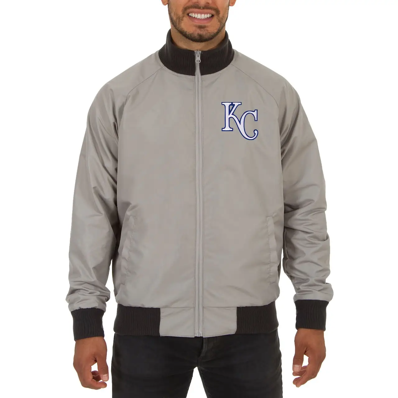 Men’s Kansas City Royals JH Design Gray Reversible Track Jacket