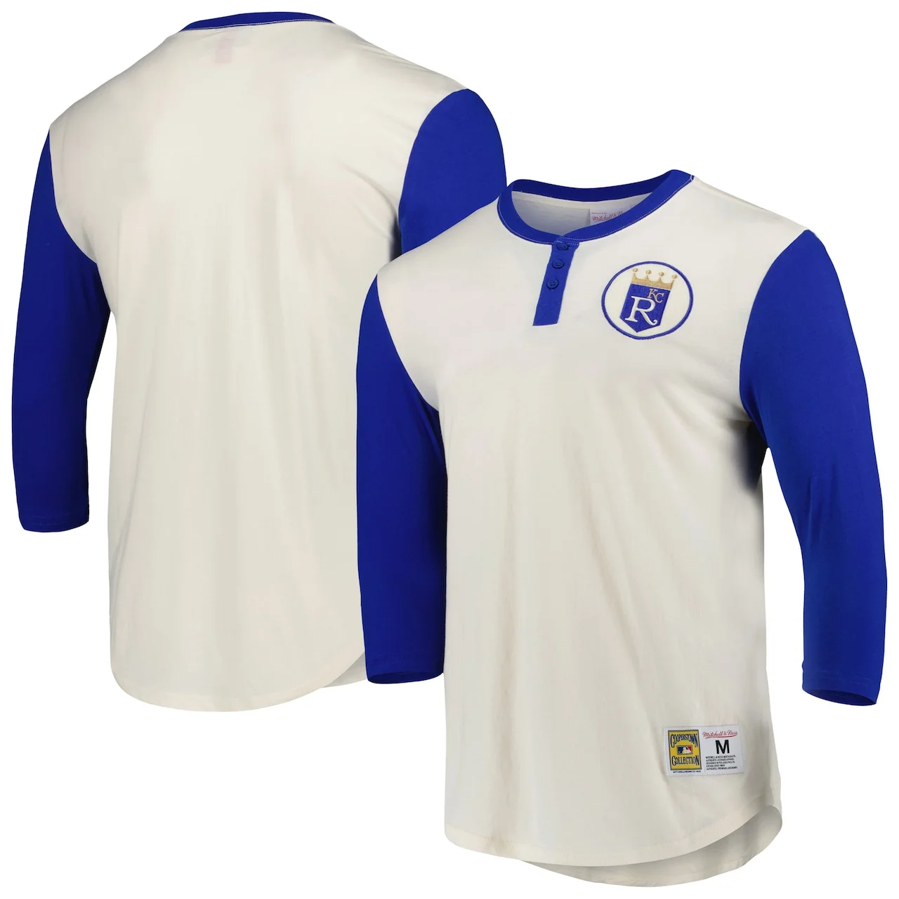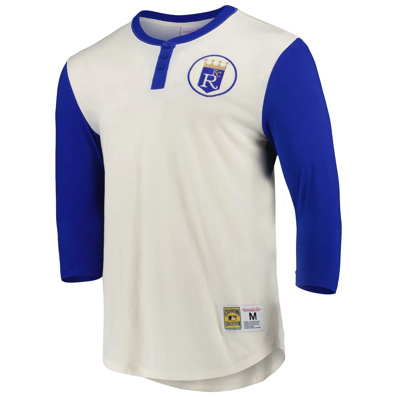 Men’s Kansas City Royals Mitchell & Ness Cream Icon Henley 3/4-Sleeve T-Shirt