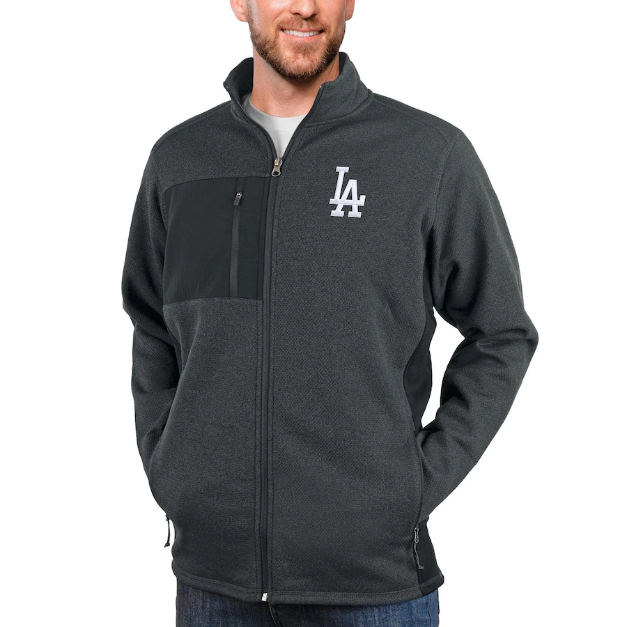 Men’s Los Angeles Dodgers Antigua Heathered Charcoal Course Full-Zip Jacket