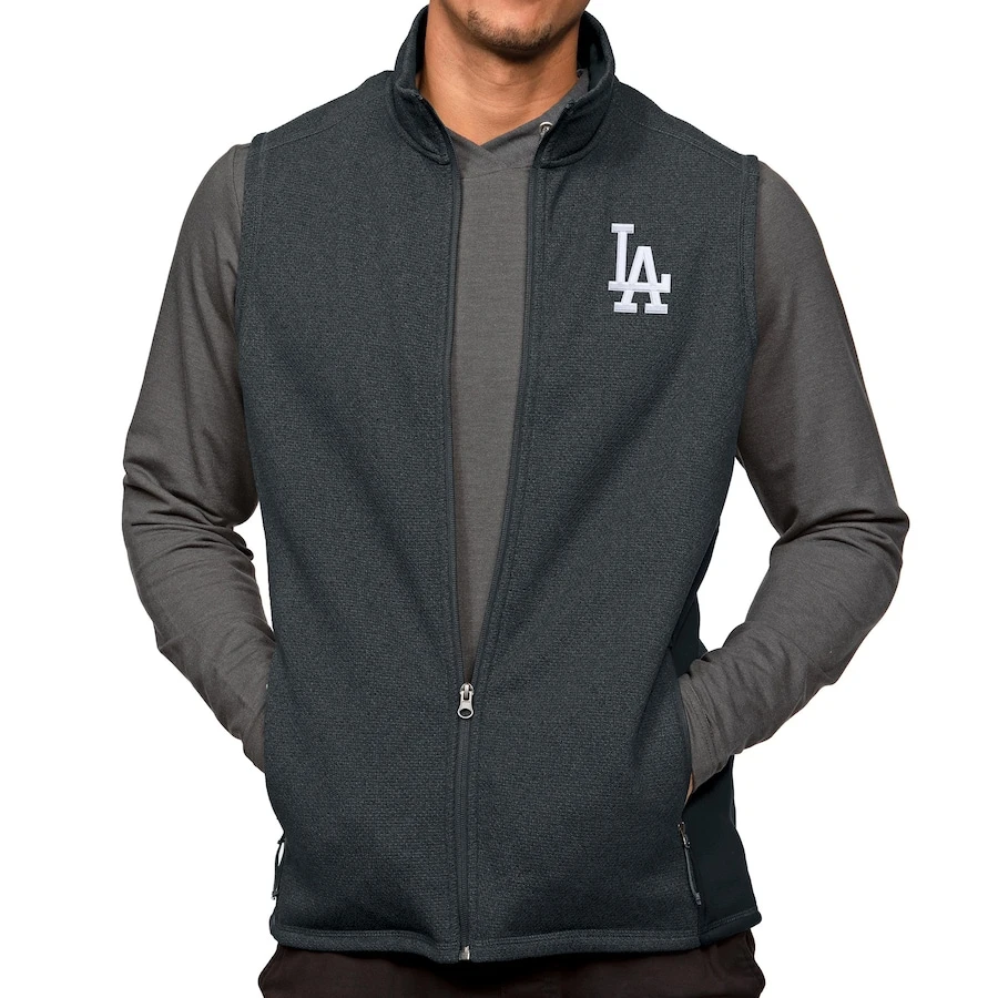 Men’s Los Angeles Dodgers Antigua Heathered Charcoal Course Full-Zip Vest