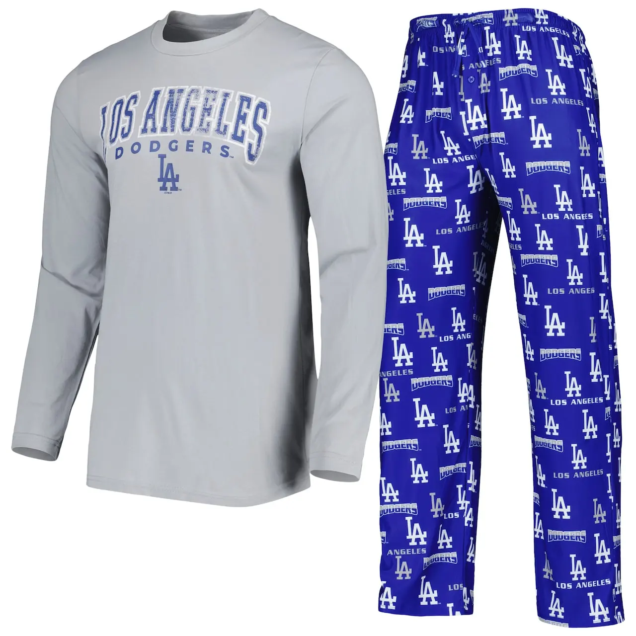 Men’s Los Angeles Dodgers Concepts Sport Royal/Gray Breakthrough Long Sleeve Top & Pants Sleep Set