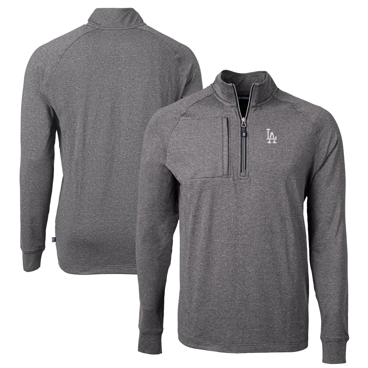 Men’s Los Angeles Dodgers Cutter & Buck Heather Black Adapt Eco Knit Stretch Recycled Quarter-Zip Pullover Top