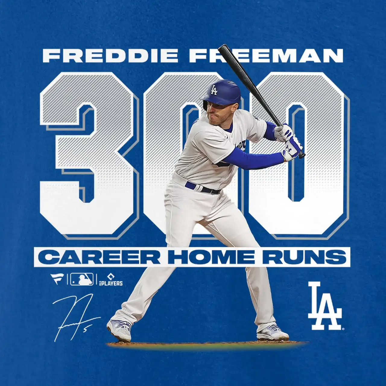 300 Home Runs in one of the most competitive baseball leagues is no small feat, but Freddie Freeman has done it. This Los Angeles Dodgers tee honors this amazing accomplishment with bold Freddie Freeman graphics that depict this hard-earned career milestone. Show the world how proud you are to be a Los Angeles Dodgers and Freddie Freeman fan with this classic team gear.