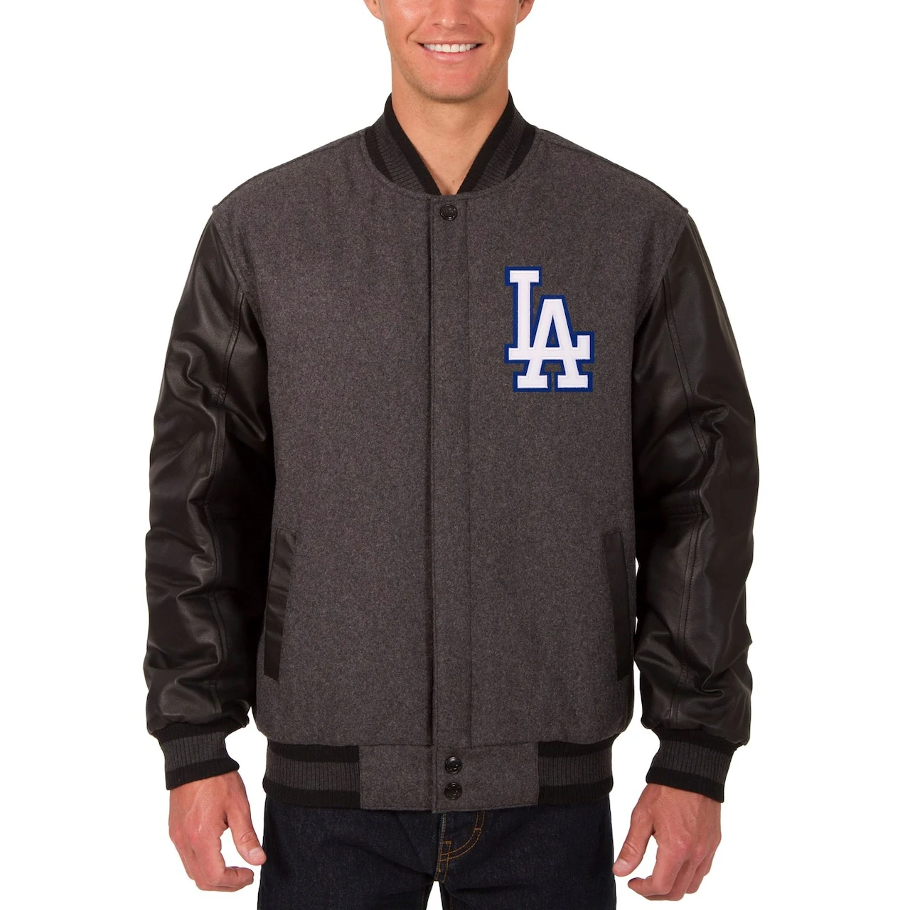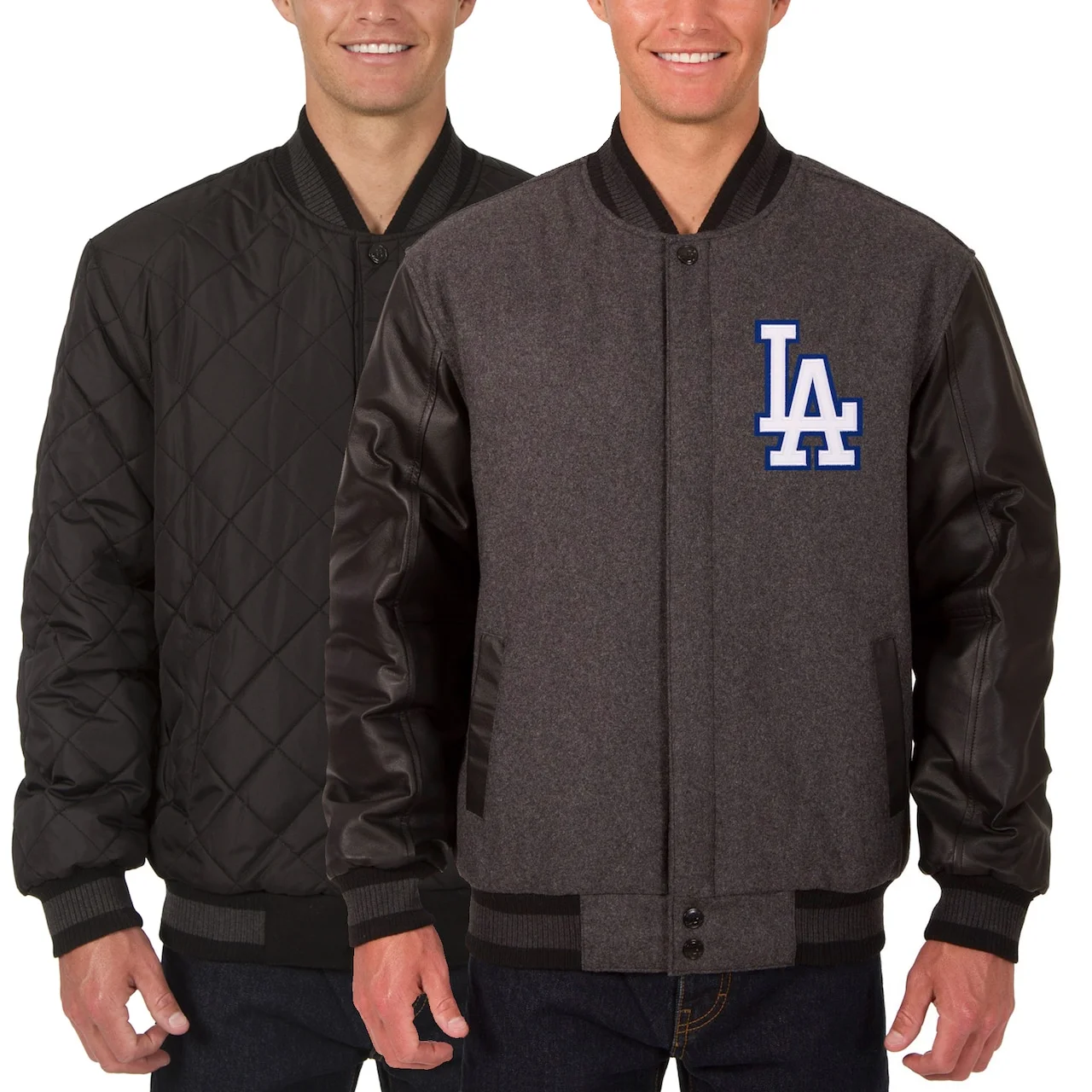 Men’s Los Angeles Dodgers JH Design Charcoal/Black Wool Leather Reversible Full-Snap Jacket