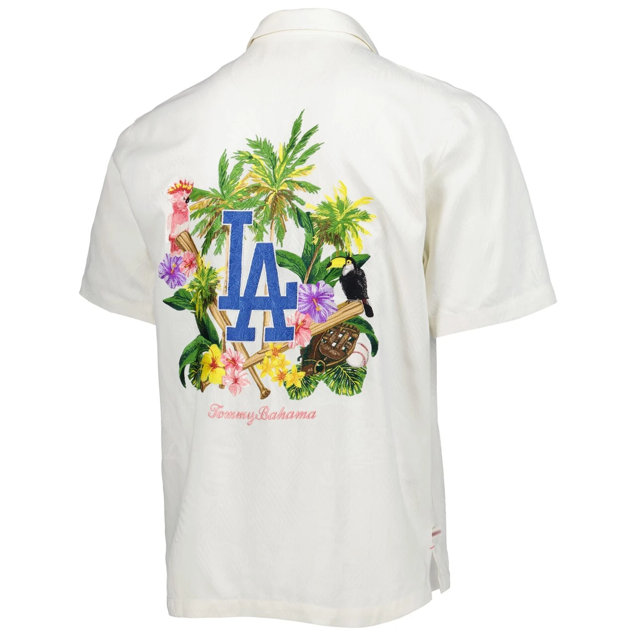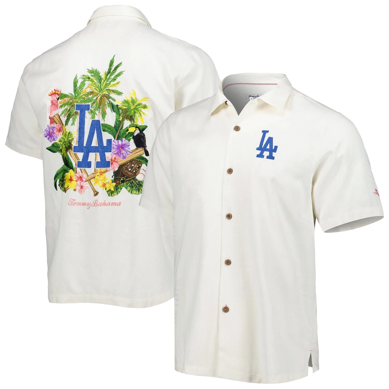 Just like the islands, this Los Angeles Dodgers Camp button-up shirt by Tommy Bahama is all about going big or going home. It’s crafted from soft silk that offers a luxurious feel. Colorful Los Angeles Dodgers graphics and tropical details take your fan gear to the next level.
