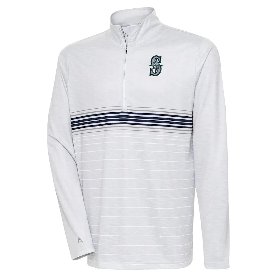 Men’s Seattle Mariners Antigua Heather Gray/Navy Bullseye Quarter-Zip Pullover Top