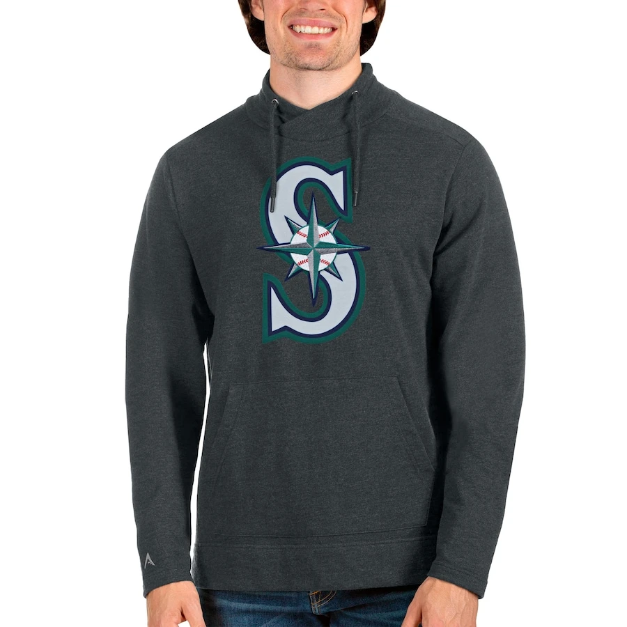 Men’s Seattle Mariners Antigua Heathered Charcoal Reward Pullover Sweatshirt