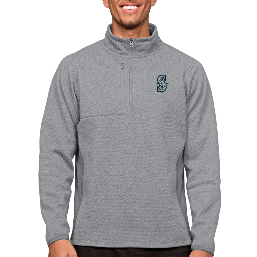 Men’s Seattle Mariners Antigua Heathered Gray Course Quarter-Zip Pullover Top