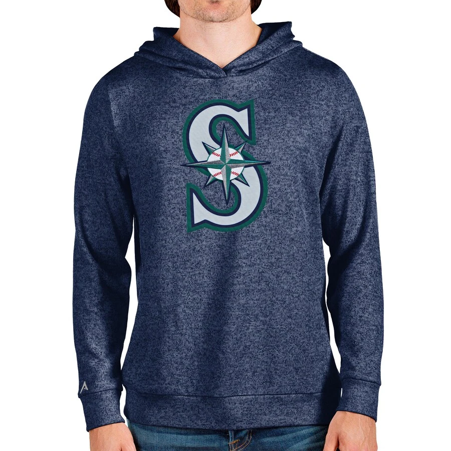 Men’s Seattle Mariners Antigua Heathered Navy Team Logo Absolute Pullover Hoodie