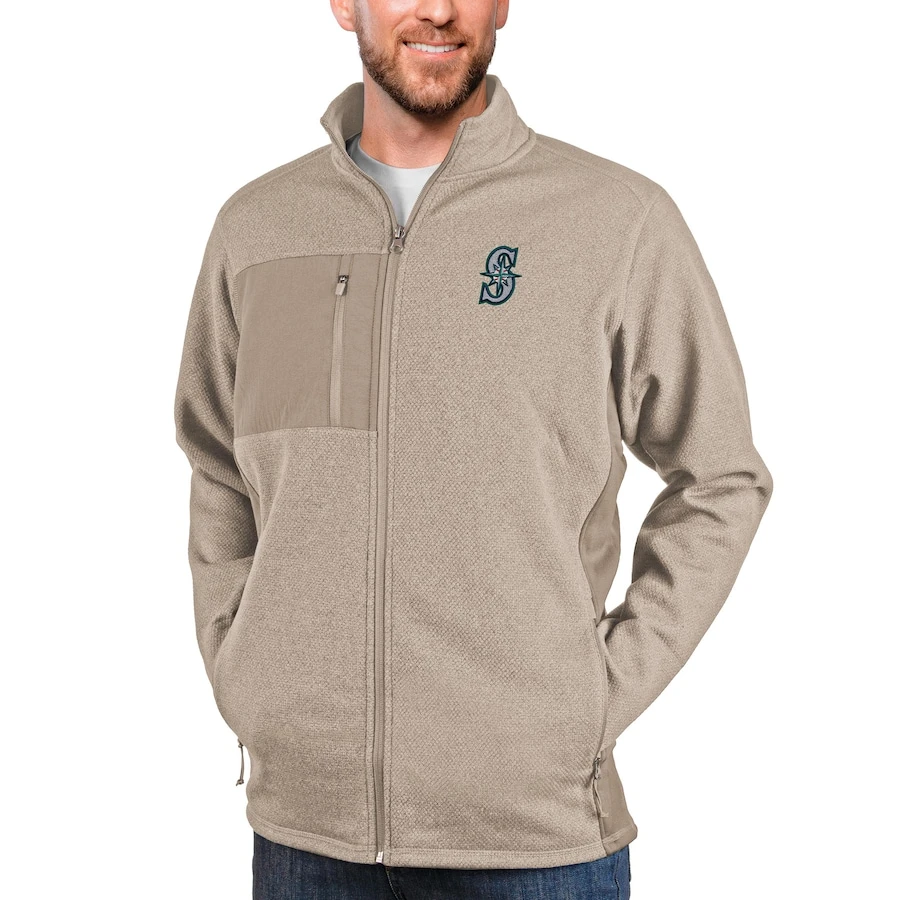 Men’s Seattle Mariners Antigua Oatmeal Course Full-Zip Jacket