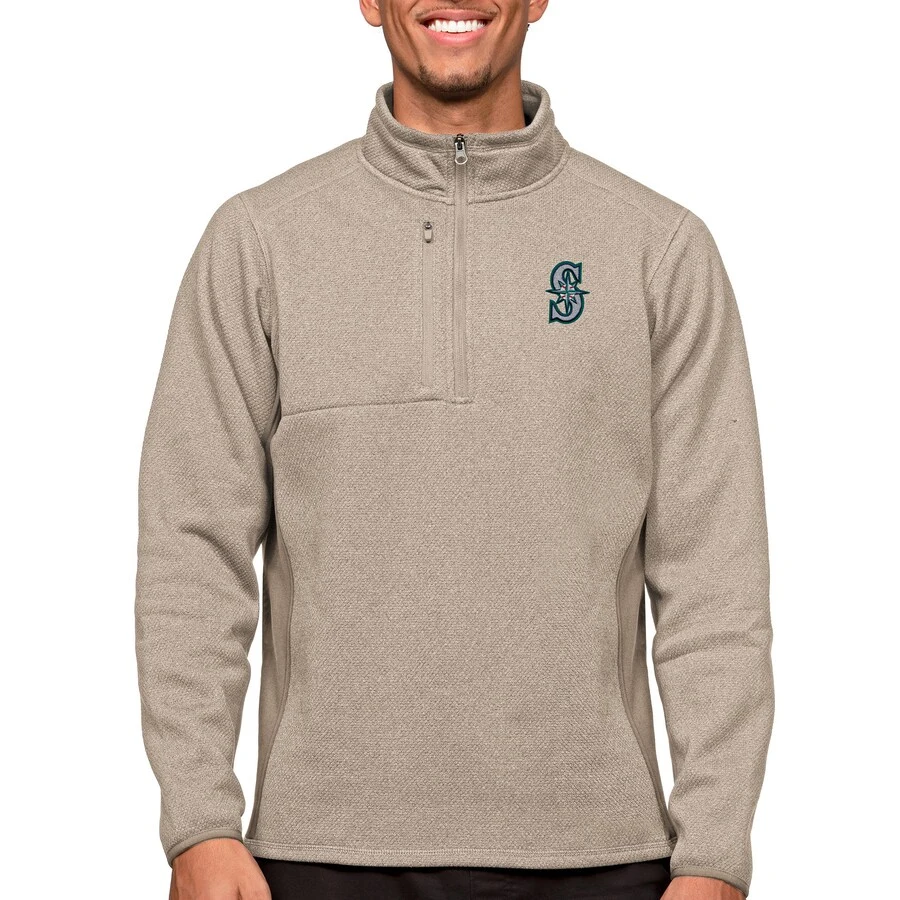 Men’s Seattle Mariners Antigua Oatmeal Course Quarter-Zip Pullover Top