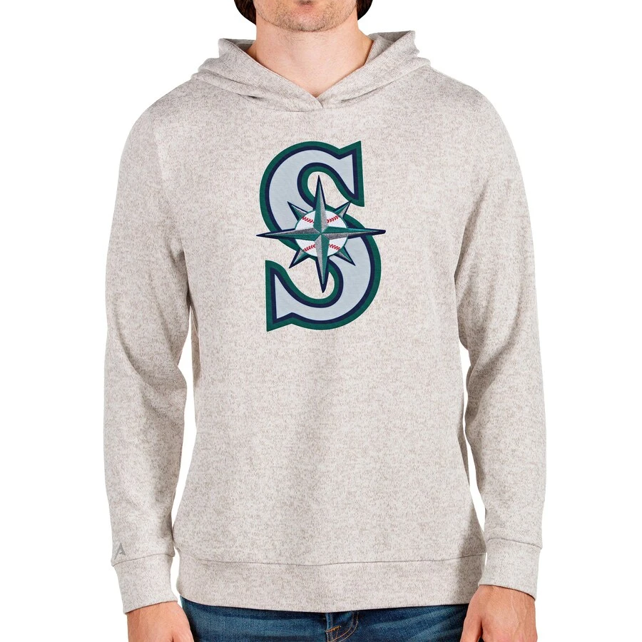 Men’s Seattle Mariners Antigua Oatmeal Team Logo Absolute Pullover Hoodie