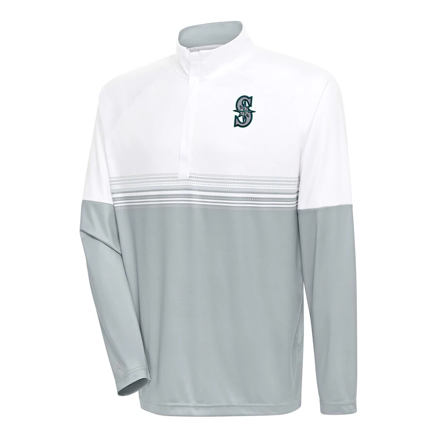 Men’s Seattle Mariners Antigua White/Gray Bender Quarter-Zip Pullover Top