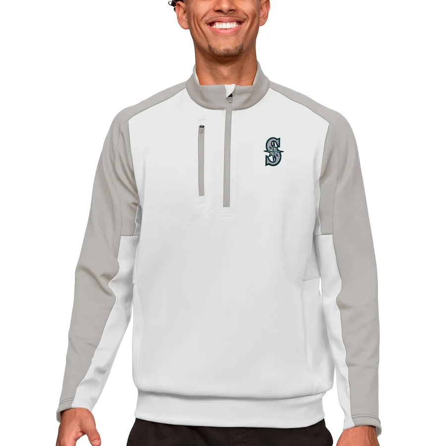 Men’s Seattle Mariners Antigua White Team Quarter-Zip Pullover Top