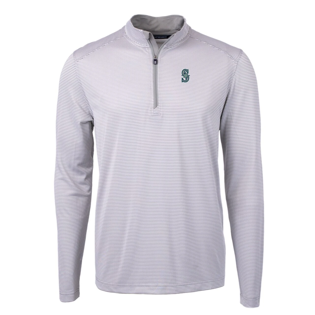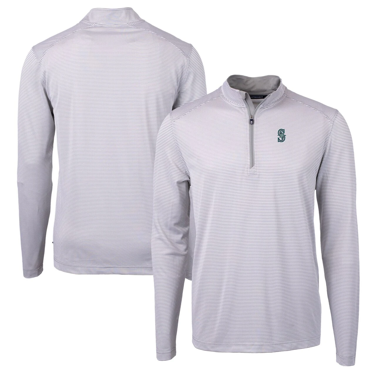 Men’s Seattle Mariners Cutter & Buck Gray Virtue Eco Pique Micro Stripe Recycled Quarter-Zip Pullover Top
