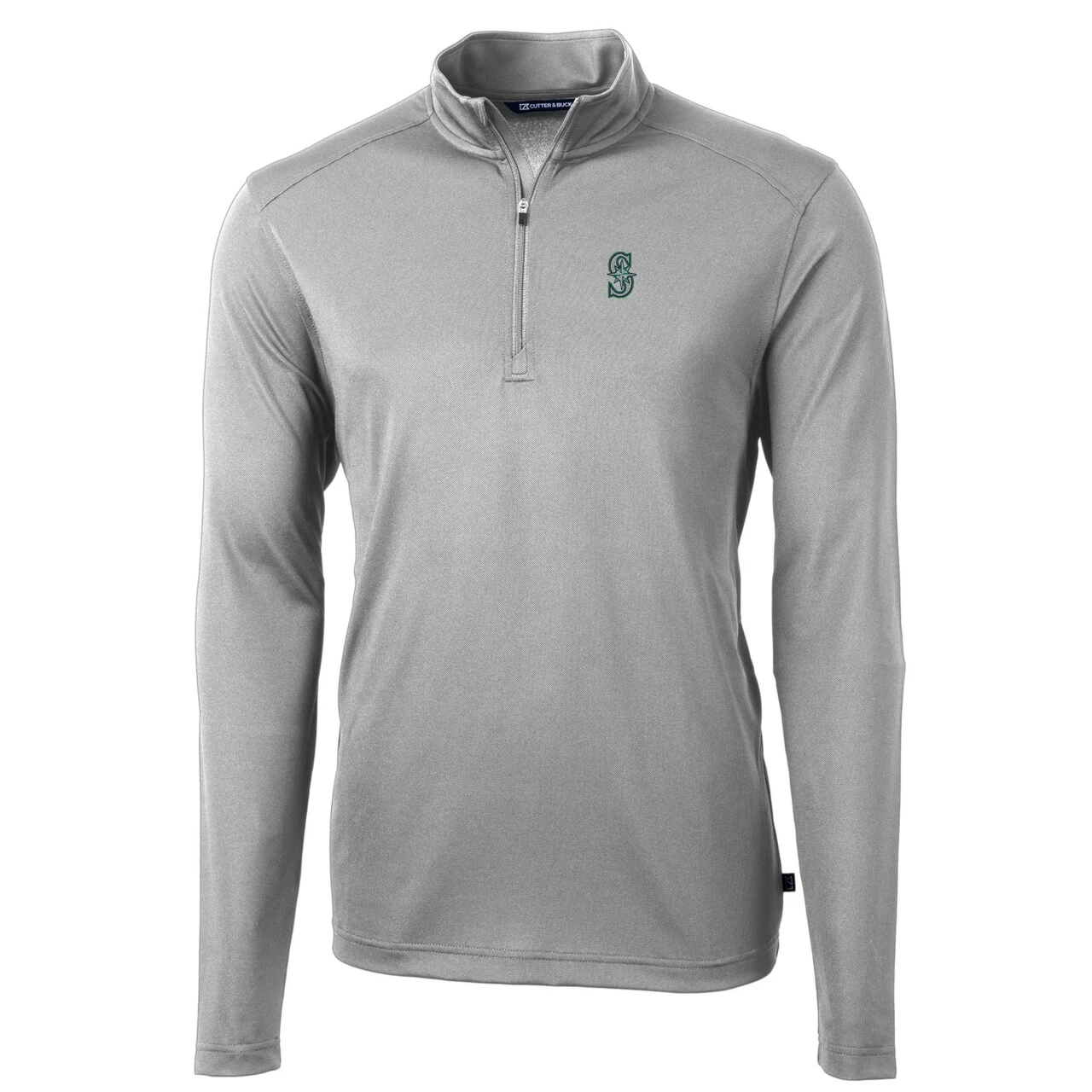 Men’s Seattle Mariners Cutter & Buck Gray Virtue Eco Pique Recycled Quarter-Zip Pullover Top