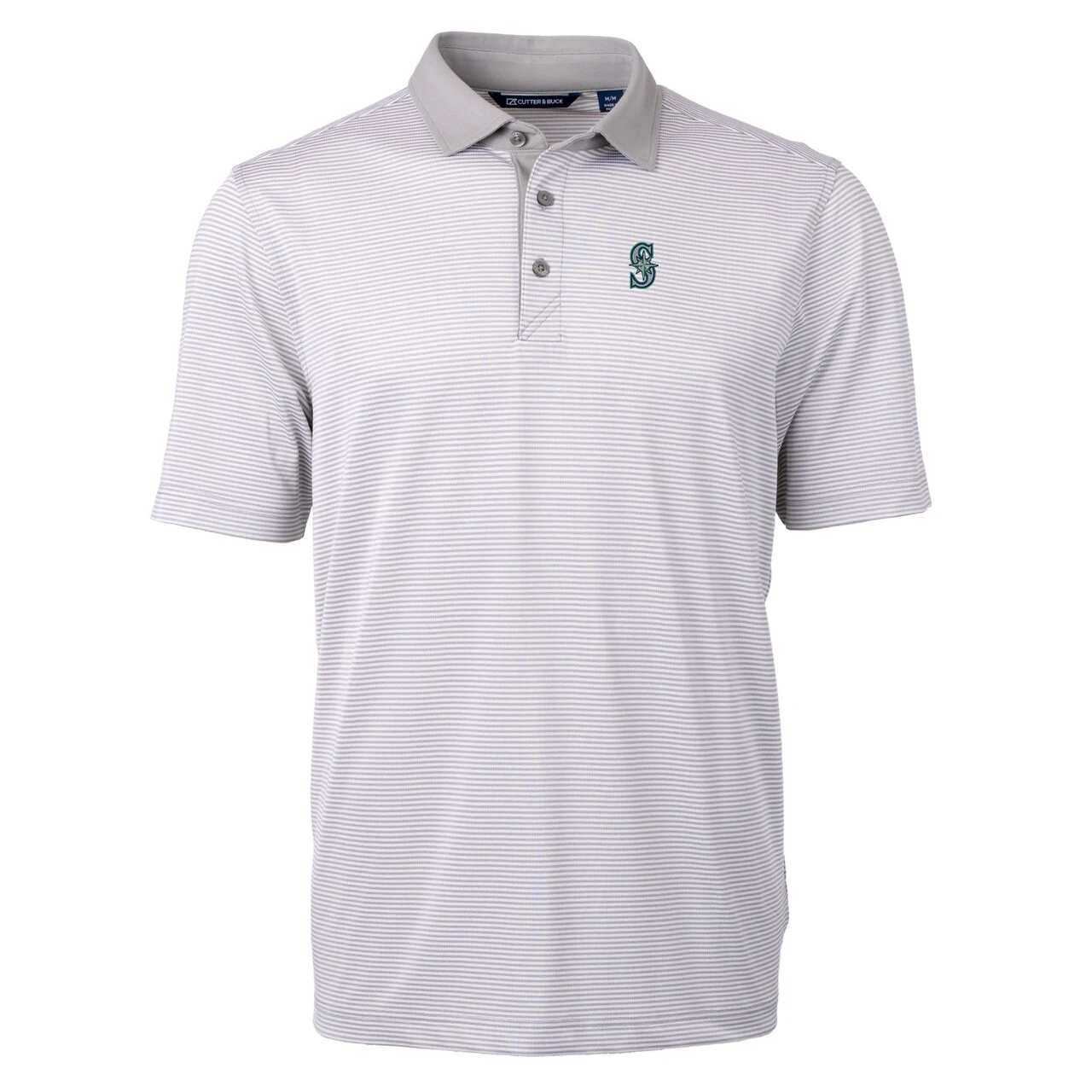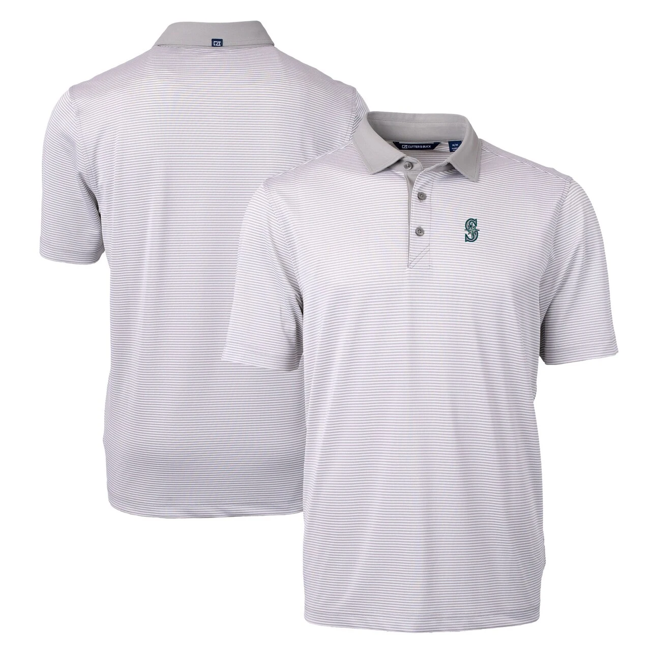 Men’s Seattle Mariners Cutter & Buck Gray/White Virtue Eco Pique Micro Stripe Recycled Polo
