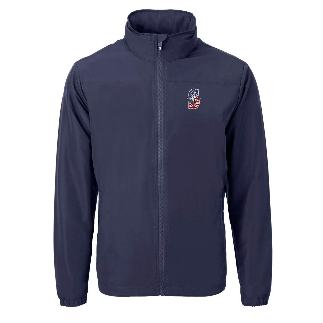 Men’s Seattle Mariners Cutter & Buck Navy Americana Logo Charter Eco Knit Recycled Full-Zip Jacket