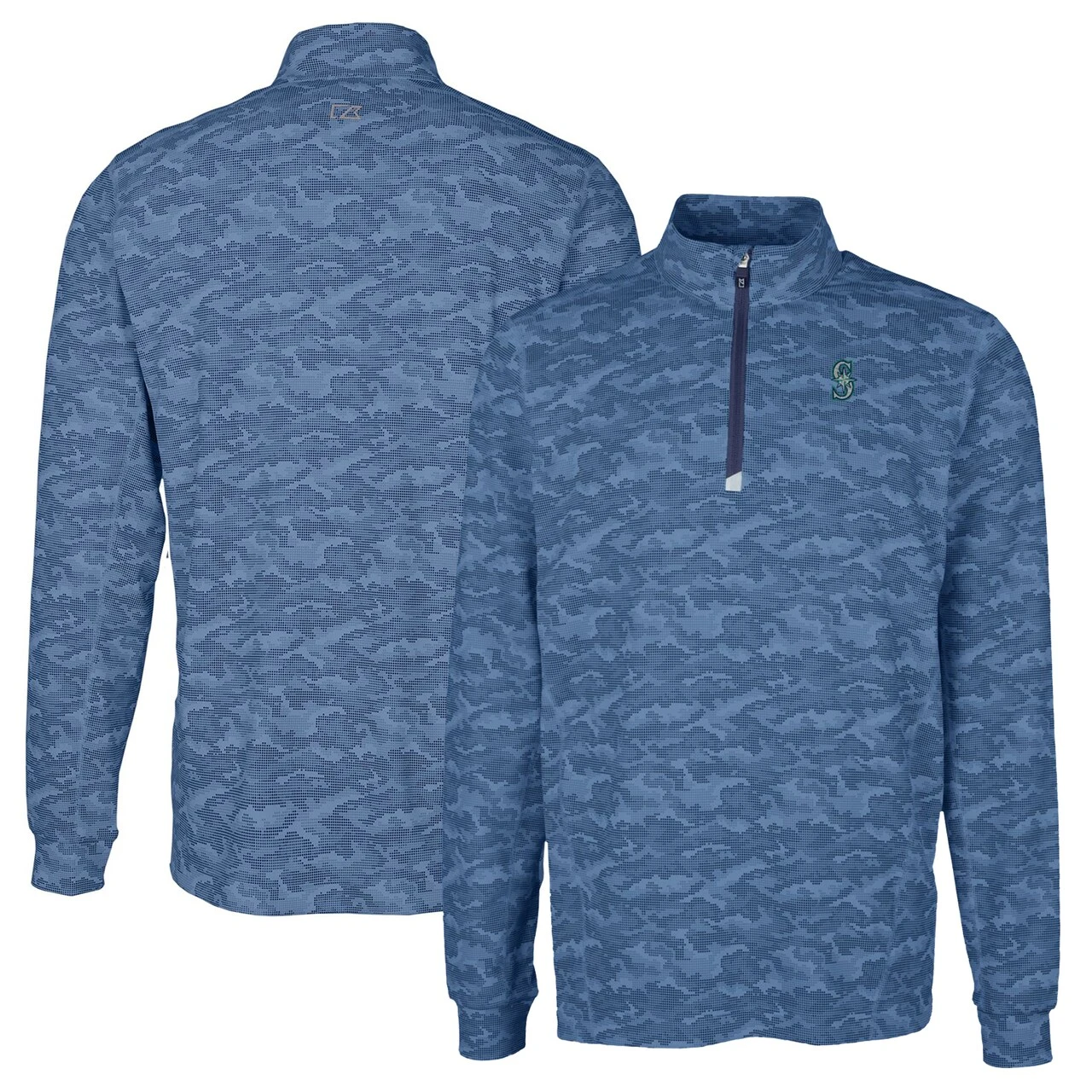 Men’s Seattle Mariners Cutter & Buck Navy Traverse Camo Print Stretch Quarter-Zip Pullover Top