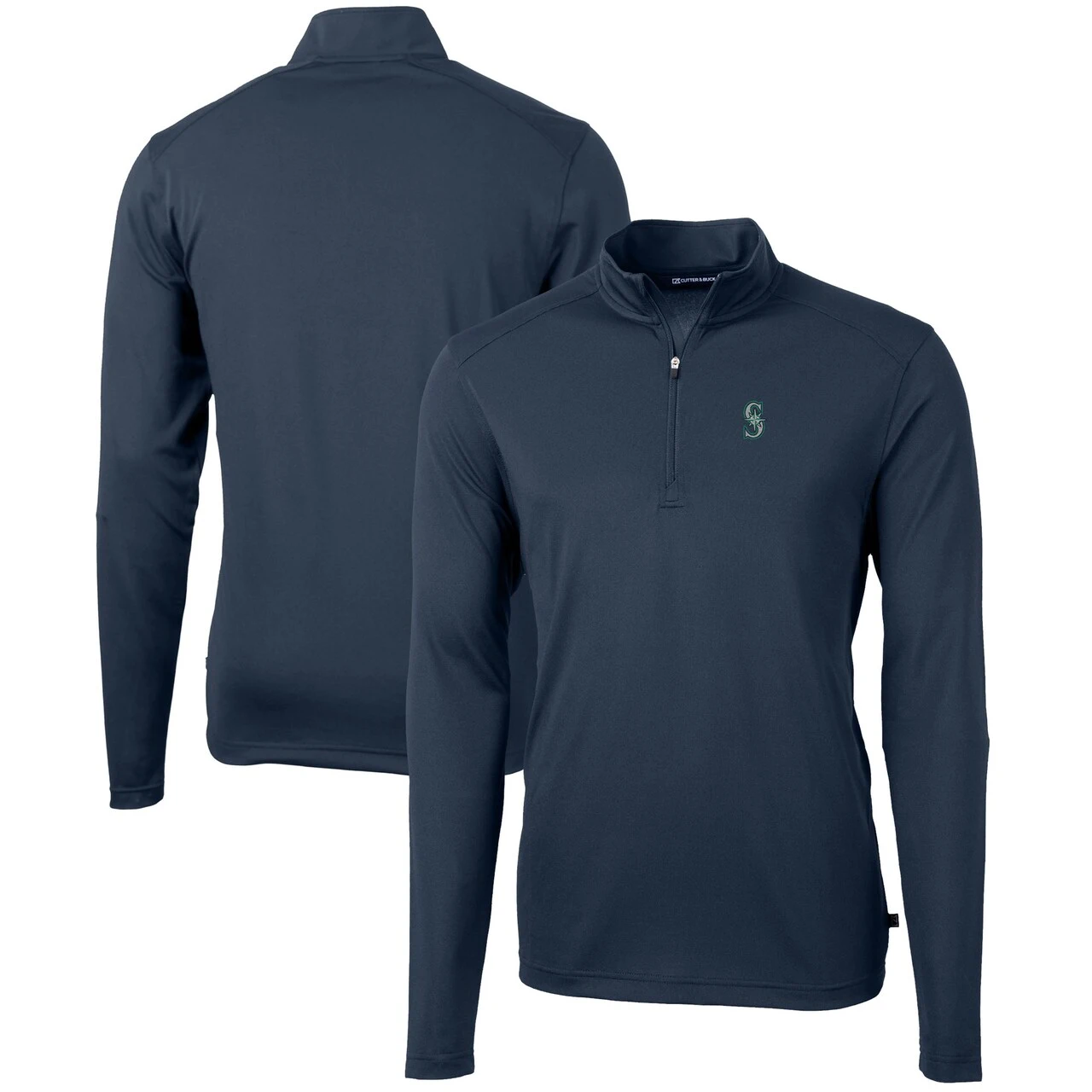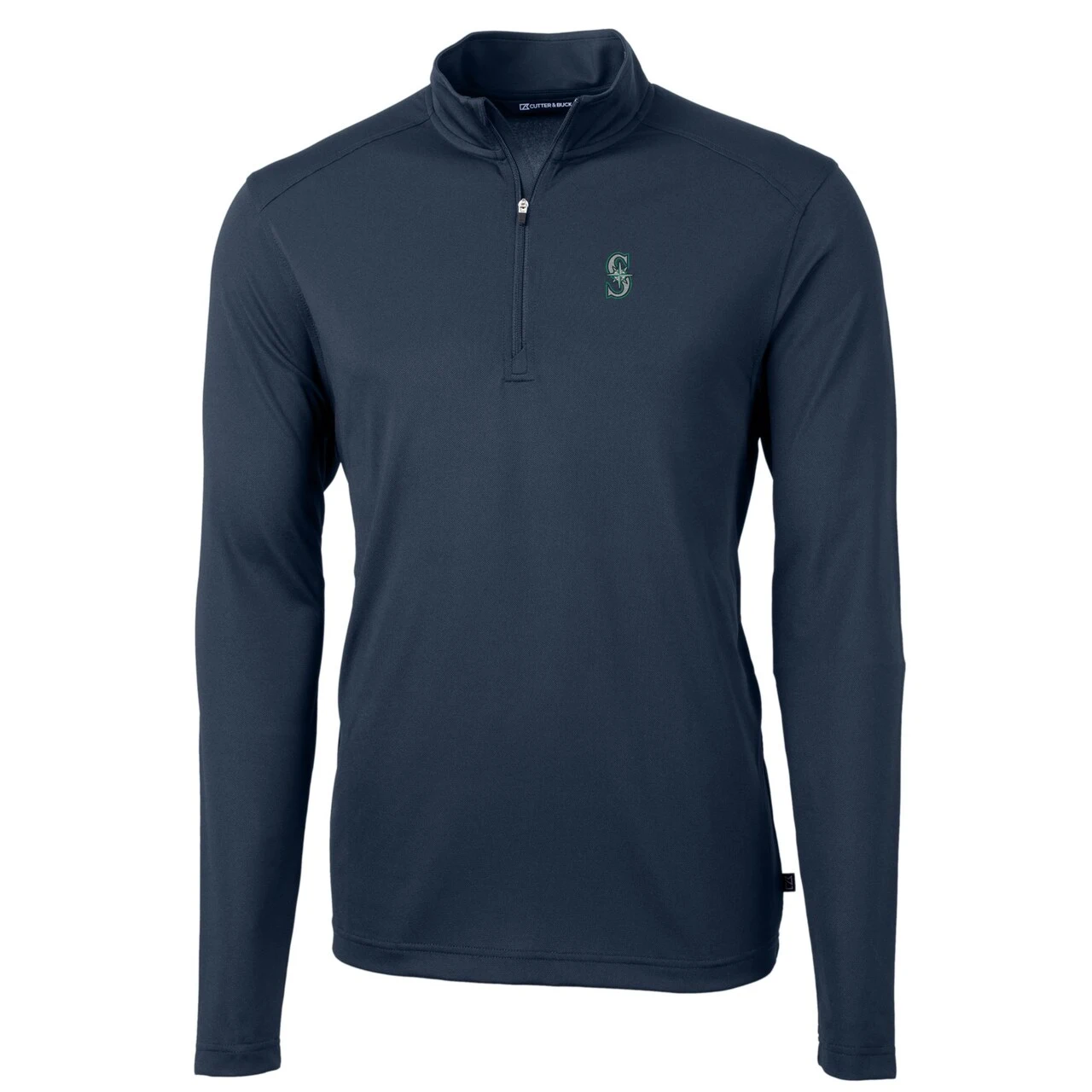 Men’s Seattle Mariners Cutter & Buck Navy Virtue Eco Pique Recycled Quarter-Zip Pullover Top