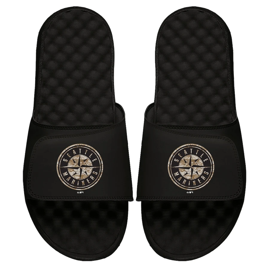Men’s Seattle Mariners ISlide Black Camo Logo Slide Sandals