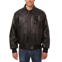 Men’s Seattle Mariners JH Design Black All-Leather Jacket